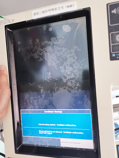 故障現(xiàn)象: 呼吸機報警:氧氣濃度過低,其他正常。 故障分析: PB840呼吸機氧濃度過低報警一般原因有:墻面供氧壓力不足;氧電池失效造成氧濃度檢測不準確;氧氣流量傳感器出現(xiàn)故障。分析原因后進行故障排查和檢修。 解決方法: 第一步校準氧氣流量傳感器,結果通過,但出現(xiàn)錯誤提示; 第二步檢查中心供氧進入病區(qū)的氧氣壓力,壓力表顯示氧氣壓力正常,排除氧氣壓力故障; 第三步測量氧氣傳感器連接線,接線正常且外觀正常,則考慮是否是氧電池有問題。 監(jiān)測氧濃度的氧電池位于呼吸輸送系統(tǒng)的呼入管道內(nèi),氧電池用于監(jiān)測混合氣體的氧濃度。PB840呼吸機氧電池使用壽命為一年左右。 排除上述原因后,確定是氧電池的故障。 更換氧電池后開機,進行EST自檢,檢測通過,再次使用,檢查氧濃度設定值與所監(jiān)測到的供氣氧濃度相吻合,且線性變化良好,一切正常,故障解除。 二、無法連接設置病人 故障現(xiàn)象: 呼吸機開機后顯示無法連接設置病人,呼吸機錯誤,且有聲光報警。 故障分析: 重新開機,報警依舊,由于呼吸閥測試屬于擴展式自檢,所以進行擴展式自檢,結果失敗,提示有兩個錯誤,再次測試,結果未變,查看維修手冊,錯誤提示為流量傳感器故障。 解決方法: 先拆開設備查看呼吸模塊其他元件,發(fā)現(xiàn)在呼氣閥的密封墊上有很多雜物,判斷這些雜物破壞呼氣閥的密封性,導致流量監(jiān)測偏離實際值。 用醫(yī)用消毒酒精清潔,裝好后再次測試,結果通過,故障解除。 排除了流量傳感器的故障,節(jié)約了成本。 三、嚴重阻塞報警 故障現(xiàn)象: PB840呼吸機在運行過程出現(xiàn)嚴重阻塞報警。 故障分析: PB840呼吸機在運行過程中出現(xiàn)阻塞報警,通常是由兩種情況導致,可能是管道出現(xiàn)積水或折疊,,也可能是吸入端或呼出端發(fā)生過濾器堵塞。 一、此種情況下,報警會出有兩種顯示:即Severe ocelusion和Screen blocked。 ① 如果呼吸機顯示Severe ocelusion,就表明呼吸機管道出現(xiàn)了阻塞,清理管道異物或更換管路就可解決。 ② 如果呼吸機顯示Screen blocked,,就提示呼吸機觸摸屏感應出現(xiàn)了故障。 二、觸摸屏感應故障分為3種情況:局部失靈、反應遲鈍和根本無反應。 ① 局部失靈一般由紅外發(fā)射或接收損壞導致; ② 反應遲鈍一般是屏幕外框集聚了過多灰塵,阻斷了紅外發(fā)射和接收,也有可能是內(nèi)部灰塵多; ③ 根本無反應則是因內(nèi)部觸摸框板固定不佳,出現(xiàn)偏位,重新固定或調(diào)整能解決。 ④ 如是根本不靈敏,可能是觸摸框板損壞或顯示屏主板壞。 解決方法: 先對外部管路進行檢查,包括呼出過濾器、吸入過濾器、積水杯等,并檢查呼吸管道是否有積水、分泌物過多或折疊,如果均正常的話,就運行快速自檢。在自檢過程中,如果流量傳感器不能通過測試,且出現(xiàn)錯誤代碼FS0001和FS0003,就說明呼出端過濾器出現(xiàn)故障。 呼出過濾器內(nèi)部的過濾紙應保持干燥,如果發(fā)現(xiàn)進水痕跡,則用高溫高壓消毒烘干,或者進行更換,呼吸機就可正常運行。 注意事項: 呼出過濾器拆裝過程中,必須要確保過濾器內(nèi)的過濾紙干燥,也不能將其倒放,防止積水杯的液體倒流,使過濾紙進水受損。 在消毒呼氣過濾器的時候,應對其密封圈同步消毒,消毒完成后,將密封圈固定好,避免出現(xiàn)漏氣問題。 四、潮氣量偏低 故障現(xiàn)象: 患者參數(shù)設置中潮氣量為500ml,實際潮氣量偏低。 故障分析: 如果呼吸機提示患者潮氣量嚴重偏低,將呼吸機潮氣量設定為450mL,則顯示呼出潮氣量為340mL左右。若患者狀態(tài)正常,出現(xiàn)這種問題的主要原因有三種:一是患者回路漏氣;二是主動呼出閥臟;三是流量傳感器故障。 解決方法: 若系統(tǒng)診斷日志未出現(xiàn)報錯提示,就運行SST檢查呼吸回路是否正常。 如流量傳感器通不過檢查,可暫時忽略,繼續(xù)進行檢查,直到排除呼吸回路漏氣問題。排除漏氣問題后,再運行EST,觀察漏氣測試能否通過測試,如出現(xiàn)測試錯誤,則檢查和清洗呼出閥。 清洗時,應卸下密封圈,使用乙醇進行清洗,可解決故障。 再次運行EST進行復試,如果系統(tǒng)仍然提示流量傳感器測試通不過,就需要觀察上半屏流量傳感器數(shù)據(jù)。 如果在測試過程中,氧流量傳感器為120L/min時,呼出流量傳感器為100L/min,當空氣流量傳感器為120L/min時,呼出流量傳感器仍為100L/min,就可以判定呼出端流量傳感器出現(xiàn)故障,只要將故障流量傳感器更換即可。 五、GUI顯示屏上半屏黑屏 故障現(xiàn)象: 開機后,呼吸機GUI上半屏黑屏,下半屏顯示正常。 故障分析: 在PB840呼吸機故障中,GUI顯示屏故障比較常見。呼吸機的GUI兩個液晶顯示屏,均借助獨立排線與GUICPU板直接連接,如果兩個液晶屏同時發(fā)生故障,就先檢查GUI CPU板。 黑屏的故障原因通常有兩種:一是液晶屏自身出現(xiàn)了問題;二是GUI CPU板的背光板出現(xiàn)問題,無法為燈管提供所需的高壓。 解決方法: 先用電筒對液晶屏進行照射,如果屏幕顯示正常信息,則可判定是高壓板出現(xiàn)了問題。 關機后,將機器拆開,緊固數(shù)據(jù)連接線,再開機測試。 如果仍然不正常,可將上下屏進行調(diào)換,如果該屏顯示仍有問題,就可判定是背光板出現(xiàn)故障,更換即可。 假如更換后,故障仍然不能排除,就可以考慮GUI CPU已經(jīng)