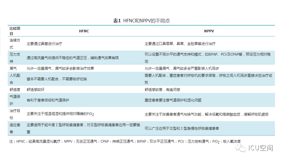 圖1 經(jīng)鼻高流量濕化氧療儀示意圖 人類開始氧氣治療的歷史可回溯到18世紀(jì)后葉,20世紀(jì)初即開始應(yīng)用橡膠制作的鼻導(dǎo)管進行氧療[4]。1987年美國研發(fā)了最高流量可達20 L/min的氧療加溫濕化裝置MT-1000,應(yīng)用于囊性肺纖維化等患者氧療促進下呼吸道分泌物排出。近10年來,HFNC進入快速發(fā)展和臨床廣泛應(yīng)用階段,國際主流HFNC裝置都是采用無創(chuàng)呼吸機的工作原理:用空氧混合器進行空氧混合,吸入氧濃度(FiO2)為21%~100%,應(yīng)用渦輪提供高流量的氣體,采用呼吸機應(yīng)用的加溫加濕器和管路加熱導(dǎo)絲對吸入氣體進行全程加溫加濕,并通過近患者端實時監(jiān)測溫度和氧濃度進行動態(tài)調(diào)控。另外,部分呼吸機廠家在有創(chuàng)和無創(chuàng)呼吸機上設(shè)置了HFNC功能,進一步拓展了呼吸機的臨床適用范圍,這也是未來的發(fā)展方向[5]。國內(nèi)HFNC的歷史僅有5年左右,在前期仿制國外HFNC的基礎(chǔ)上進行創(chuàng)新,在很短的時間內(nèi)形成自己的特色,如可自動調(diào)節(jié)和精確調(diào)控FiO2(21%~100%)、溫度控制精度可達到±1 ℃、呼吸管路采用免消毒氣路技術(shù)等。 二、HFNC設(shè)備的結(jié)構(gòu)特點及其工作原理 (一)HFNC的結(jié)構(gòu)特點 HFNC按其結(jié)構(gòu)特點可分為3大組成部分。 (1)氣體的空氧混合部分:其作用是將空氣和氧氣按預(yù)設(shè)氧濃度在渦輪前進行混合。氧濃度調(diào)控有2種方法,一種是通過浮標(biāo)式氧氣流量計調(diào)節(jié)氧氣流量實現(xiàn)對氧濃度的控制,該方法無法預(yù)設(shè)氧濃度,只能通過調(diào)節(jié)氧氣流量產(chǎn)生實際的FiO2;一種是微型比例閥和超聲氧濃度傳感器實現(xiàn)對氧濃度的控制,可以預(yù)設(shè)FiO2。 (2)氣體的加溫濕化部分:其作用是將空氧混合后的氣體進行加溫濕化。 (3)氣體的輸送部分:其作用是保證已完成加溫濕化的空氧混合氣體以恒溫恒濕恒流速的方式輸送至患者端。高流量濕化氧療儀與患者連接部分為高流量鼻塞,高流量鼻塞的尖端呈斜面型的出口,質(zhì)地柔軟,用一個具有彈性可調(diào)節(jié)的過耳頭帶固定于患者面部。 (二)HFNC的生理學(xué)機制 HFNC通過輸送高流速氣體的方式,可以維持一定水平的PEEP,維持肺泡開放,有利于呼氣末肺泡復(fù)張和氣血交換。Corley等[6]通過使用電阻抗斷層掃描(EIT)測量心臟手術(shù)后肺容積的生理學(xué)研究證明了HFNC可促進呼氣末肺容積增加,表明HFNC通過高流量產(chǎn)生的PEEP作用促進肺復(fù)張。有研究結(jié)果顯示,HFNC流量每增加10 L/min,患者咽腔PEEP就增加0.5~1 cmH2O(1 cmH2O=0.098 kPa)[7]。流量增加到60 L/min時,閉口的女性受試者咽腔PEEP可達到8.7 cmH2O左右,男性為5.4 cmH2O;張口呼吸情況下女性為3.1 cmH2O,男性為2.6 cmH2O左右。但值得注意的是,由于HFNC允許大量漏氣,患者若張口呼吸必然導(dǎo)致PEEP水平不穩(wěn)定[6]。 HFNC通過為患者提供恒定的、可調(diào)節(jié)的高流速空氧混合氣體,沖刷患者呼氣末殘留在鼻腔、口腔及咽部的解剖無效腔的氣體,可明顯減少患者下一次吸氣時吸入的CO2的含量[8]。M?ller等[9]通過81 mKr氣體測定HFNC對10名健康人鼻咽部和3例氣管切開患者CO2的清除率,發(fā)現(xiàn)CO2清除率和HFNC的氣體流速和佩戴時間直接相關(guān)。 HFNC主要關(guān)注于提供相對精確的恒溫和恒濕的高流量氧療,因而能夠更符合人體生理情況下呼吸道的氣體溫度及濕度,降低醫(yī)用干冷氣體對上下呼吸道黏液纖毛系統(tǒng)功能和黏膜的影響[10]。與普通氧療相比,使用HFNC可以明顯降低患者鼻、口、咽喉的干燥評分,有助于稀釋痰液和排痰,修復(fù)和維持人呼吸道上皮細(xì)胞和纖毛的結(jié)構(gòu)和功能,提高患者的舒適度,降低下呼吸道感染的發(fā)生幾率[6,11] 鼻咽腔通過提供較大的表面積對吸入氣體進行濕化和溫化,但同時吸入氣體之間的摩擦?xí)饬鳟a(chǎn)生明顯的阻力[12]。HFNC可以提供滿足患者吸氣流速需求、恒溫恒濕的高流量氣體,患者在吸氣時不需要用力吸氣也不需要對吸入氣體進行加溫加濕,這樣不僅降低吸氣阻力,同時避免患者對吸入氣體進行溫化濕化所需的代謝消耗,減少患者的呼吸做功[13,14]。而且與常規(guī)氧療輸出的低流量氧氣方式相比,HFNC能提供符合或超過患者所需的吸氣峰流速,減少了吸氣時空氣的稀釋作用,使得吸入氧氣的濃度不會受到患者的呼吸頻率、吸氣流速、呼吸形態(tài)等因素的影響,為患者提供精確穩(wěn)定的吸氧濃度,有利于改善患者氧合[6]?;颊叩脱鯛顟B(tài)得到改善,呼吸更舒適,自主用力呼吸減弱,加之PEEP作用,呼吸功會隨之降低[15]。 三、HFNC與NPPV的異同點 HFNC和NPPV在治療原理上存在許多相似之處。從工作原理上看,都是電動渦輪機驅(qū)動形成高速氣流,通過電磁閥實現(xiàn)流量可控,氣流均可加溫加濕,都是傳統(tǒng)意義上的正壓通氣,能夠維持一定水平的PEEP,實現(xiàn)氣道開放,減少死腔,改善通氣,且允許開放氣道發(fā)生漏氣。HFNC和NPPV的不同點見表1[16,17]。 表1 HFNC和NPPV的不同點 四、HFNC臨床適應(yīng)癥及禁忌癥 由于各研究結(jié)果間的差異[18,19,20],目前HFNC臨床應(yīng)用的適應(yīng)證和禁忌證尚無統(tǒng)一的標(biāo)準(zhǔn)。根據(jù)已發(fā)表的HFNC臨床應(yīng)用研究證據(jù),目前認(rèn)為HFNC主要應(yīng)用于治療輕~中度Ⅰ