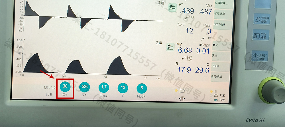 接好氧氣管和空氣管,然后開(kāi)機(jī)到正常工作頁(yè)面