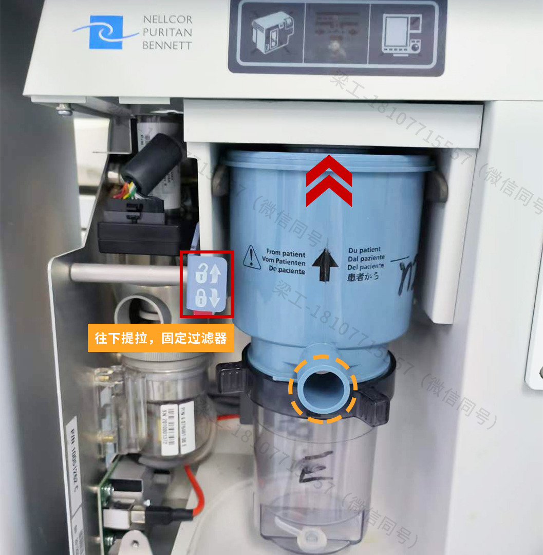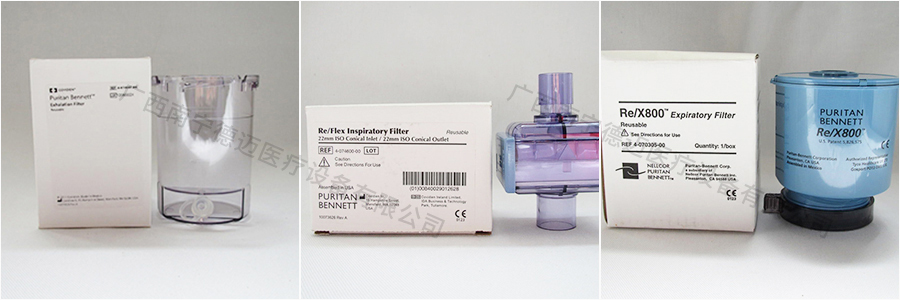 1.將呼出端過濾器鎖扣向右邊旋轉,聽到“咔”的一聲即可。 2.將集水杯排水口膠塞與呼氣支口對準在同一水平線上,將集水杯卡緊在過濾器下方,然后往左邊扭緊。 3.將呼吸機主機左側鎖定裝置往上提拉至解鎖狀態(tài)。 4.將呼氣支口朝外,沿滑軌放入,并使呼出端過濾器邊緣滑到安裝槽內,推到最里面,推到不能推動為止;放下左側鎖定裝置,固定呼出端過濾器。 二、拆卸 1.將左側鎖定裝置往上提拉至解鎖狀態(tài),取出呼出端過濾器。 2.將呼出端過濾器鎖扣向右邊旋轉,取下集水杯。 3.將集水杯內的冷凝水倒入專門收集醫(yī)療廢棄物的容器。 (因為集水杯的冷凝水可能帶有傳染病菌) 4.擦干呼出端過濾器及集水杯的水珠,送去供應室進行消毒。 三、消毒 PB840呼吸機的呼出端和吸氣端過濾器應該采用高溫高壓的方式進行消毒(溫度132-134℃,20分鐘) 注意:溫度不宜超過135℃,禁止浸泡! 四、PB840呼吸機耗材(呼出端過濾器集水杯、吸入端過濾器、呼出端過濾器) PB840呼吸機流量傳感器 PB840呼吸機兼容氧電池 PB840呼吸機空壓機保養(yǎng)套件