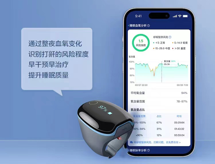 智慧連接血氧 / 心電監(jiān)測(cè),全方位睡眠數(shù)據(jù)管理,專業(yè)報(bào)告一鍵查看。