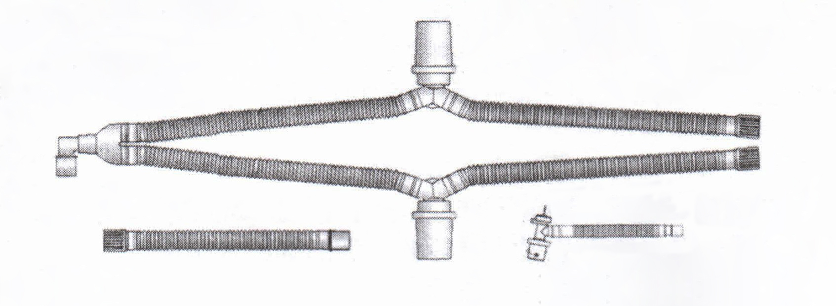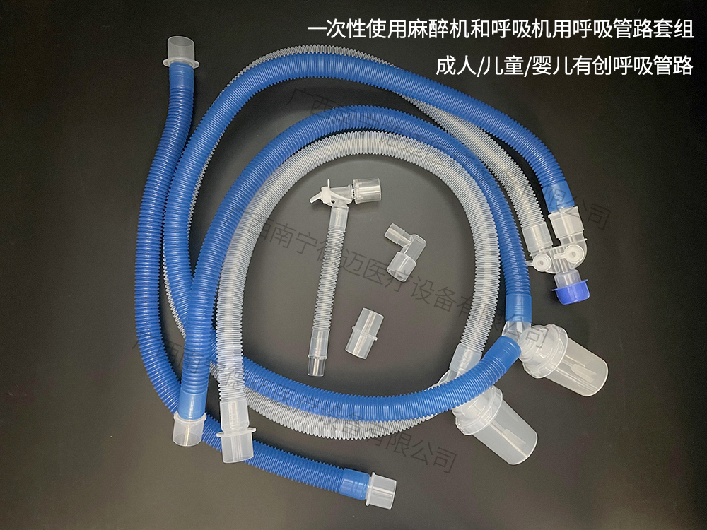 適用范圍: 搭配有創(chuàng)呼吸機(jī)使用,適用于麻醉機(jī)、呼吸機(jī)接口與供氧面罩的管路連接,作為麻醉氣體、氧氣進(jìn)入人體內(nèi)的通道。 1、結(jié)構(gòu)組成 一次性使用麻醉機(jī)和呼吸機(jī)用呼吸管路套組包括單管路型和雙管路型,由波紋管、接頭(直型、Y型、L型、T型)、轉(zhuǎn)換接頭、集水杯(選配)、壓力管(選配)、延長(zhǎng)管(選配)、單向閥(選配)和儲(chǔ)氣囊(選配)組成。以無(wú)菌形式提供,經(jīng)環(huán)氧乙烷滅菌,一次性使用。